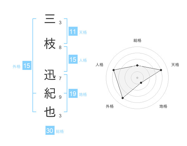 三枝 迅紀也さんを姓名の画数から五運を鑑定