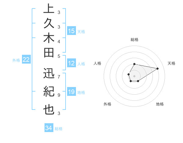 上久木田 迅紀也さんを姓名の画数から五運を鑑定