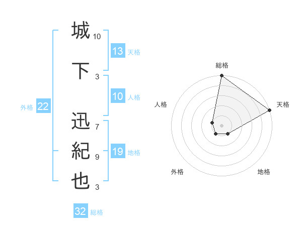 城下 迅紀也さんの総格は32画の5点!
