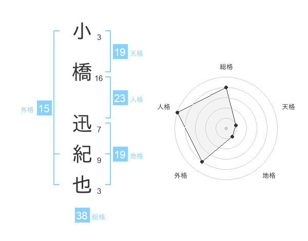 小橋 迅紀也さんの総格は38画の4点!