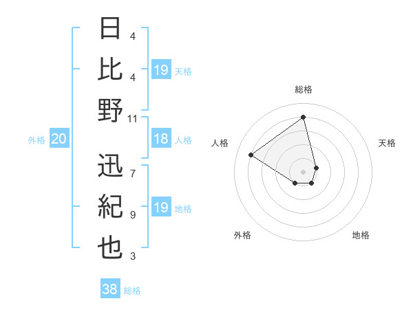 日比野 迅紀也さんを姓名の画数から五運を鑑定