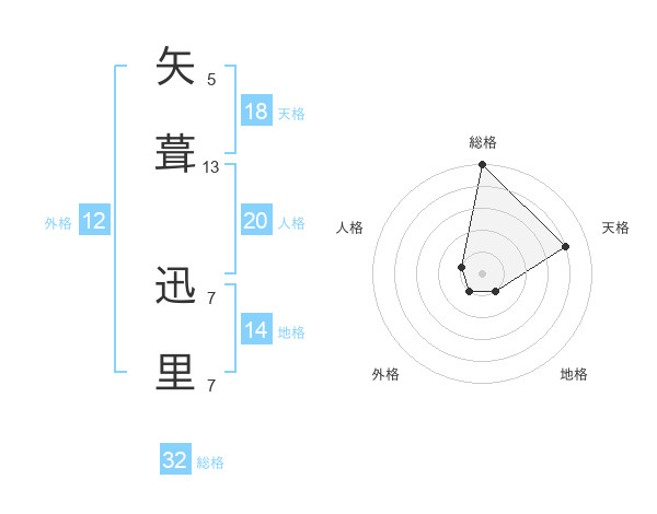 矢葺 迅里さんの総格は32画の5点!
