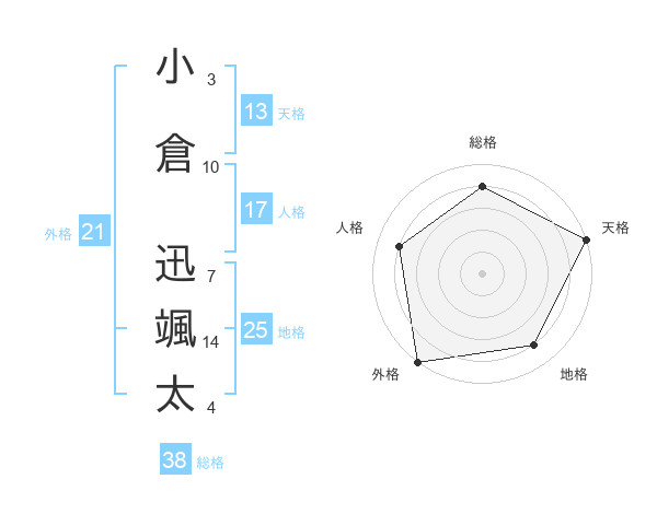 小倉 迅颯太さんを姓名の画数から五運を鑑定