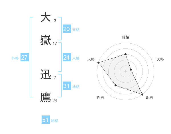 大嶽 迅鷹さんの総格は51画の3点!