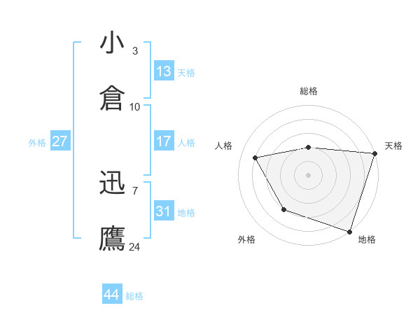小倉 迅鷹さんを姓名の画数から五運を鑑定