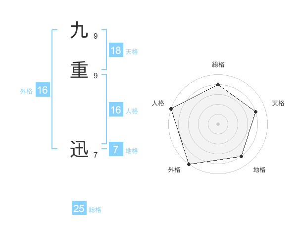 九重 迅さんの外格は16画の5点!