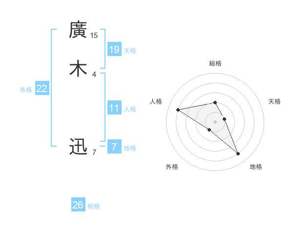 廣木 迅さんの天格は19画の1点!