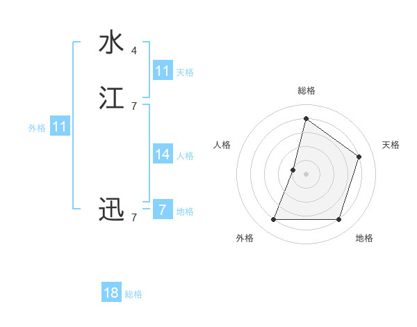 水江 迅さんの総格は18画の4点!