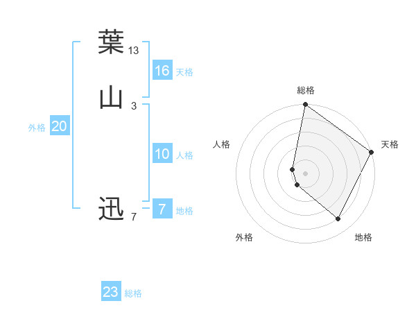 葉山 迅さんの総格は23画の5点!