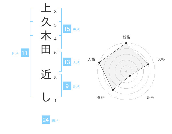 上久木田 近しさんを姓名の画数から五運を鑑定