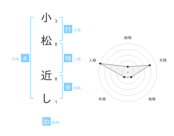 小松 近しさんの総格は20画の1点!