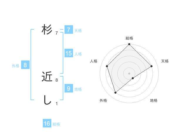 杉 近しさんの総格は16画の5点!
