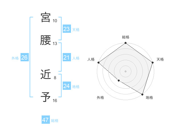 宮腰 近予さんを姓名の画数から五運を鑑定