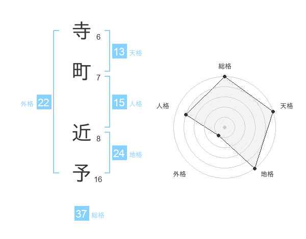 寺町 近予さんの総格は37画の5点!
