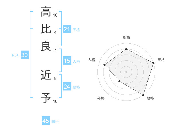 高比良 近予さんの天格は21画の5点!