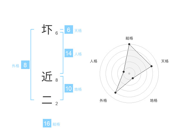 圷 近二さんの総格は16画の5点!