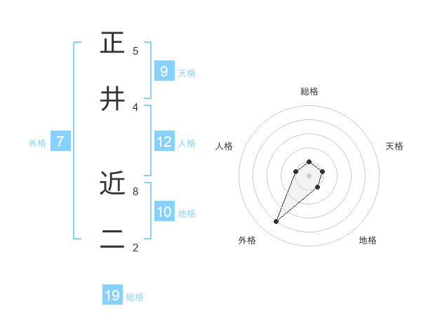 正井 近二さんの外格は7画の4点!