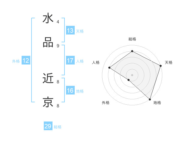 水品 近京さんの総格は29画の4点!