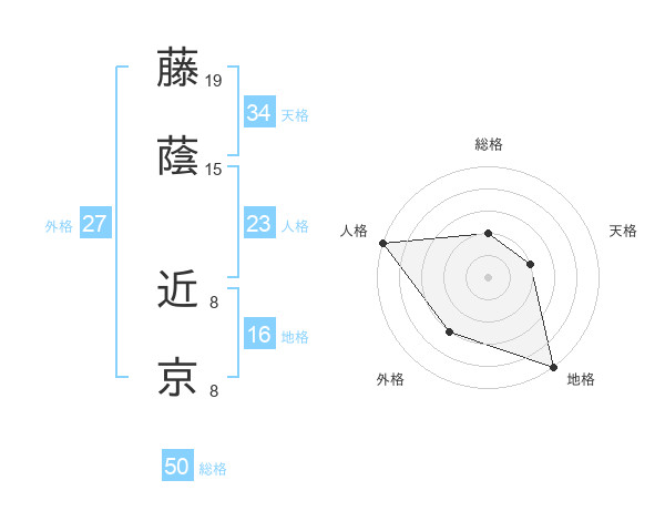 藤蔭 近京さんの総格は50画の2点!