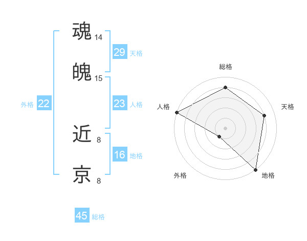 魂魄 近京さんの総格は45画の4点!