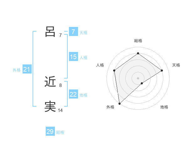 呂 近実さんの総格は29画の4点!
