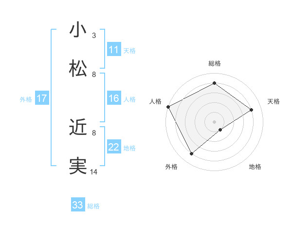 小松 近実さんの総格は33画の4点!