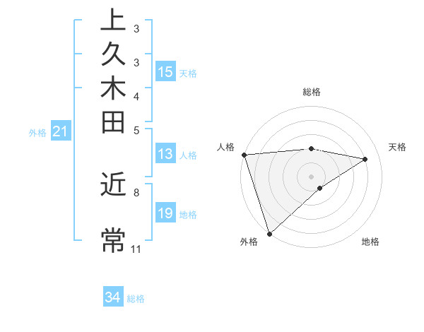 上久木田 近常さんを姓名の画数から五運を鑑定