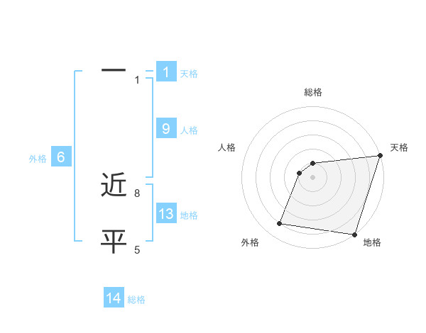 一 近平さんの総格は14画の1点!