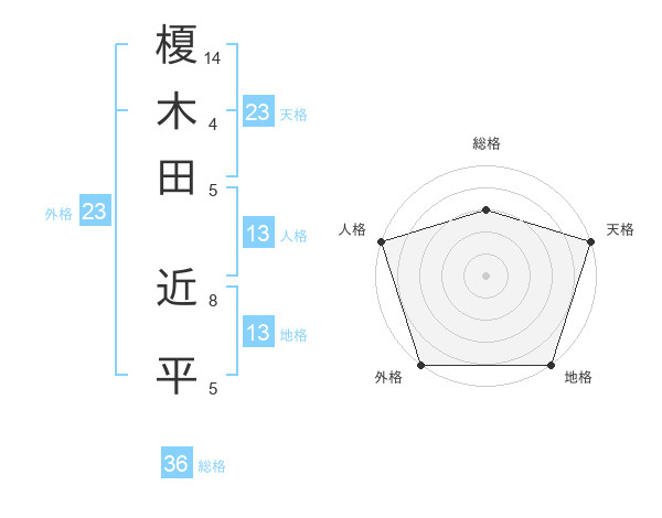 榎木田 近平さんの天格は23画の5点!