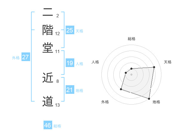 二階堂 近道さんを姓名の画数から五運を鑑定