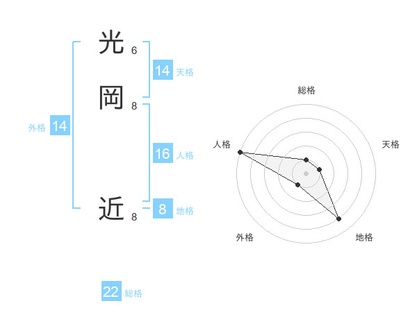 光岡 近さんの総格は22画の1点!