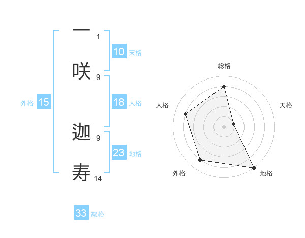 一咲 迦寿さんを姓名の画数から五運を鑑定
