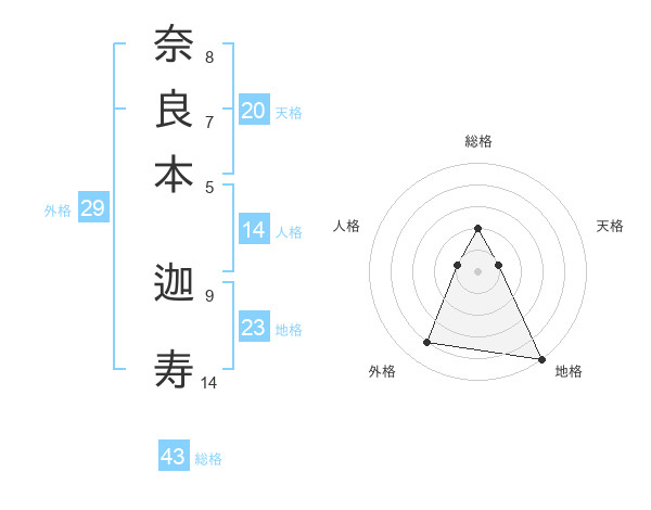 奈良本 迦寿さんを姓名の画数から五運を鑑定
