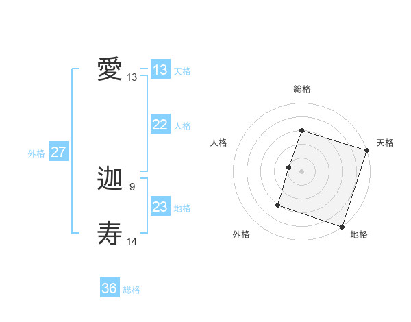 愛 迦寿さんを姓名の画数から五運を鑑定