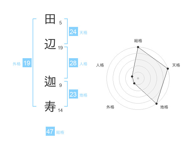 田辺 迦寿さんの天格は24画の5点!