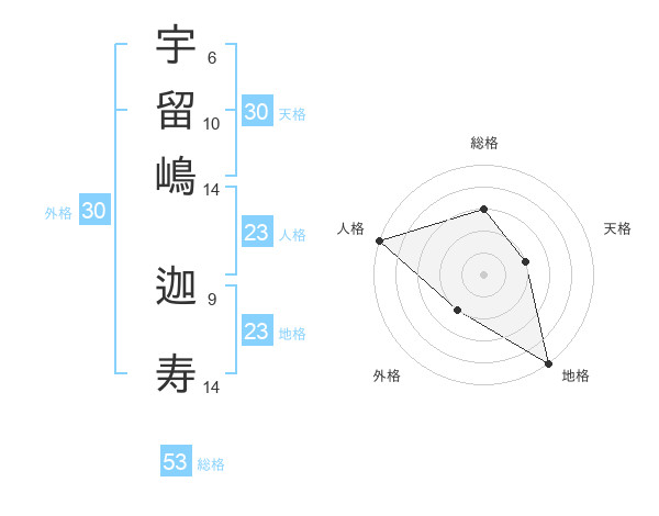 宇留嶋 迦寿さんを姓名の画数から五運を鑑定