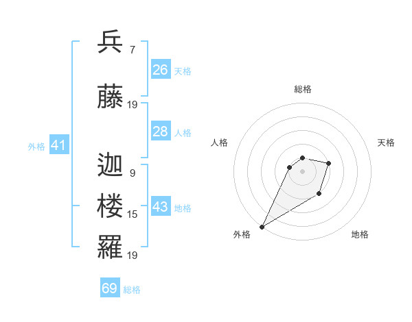 兵藤 迦楼羅さんを姓名の画数から五運を鑑定
