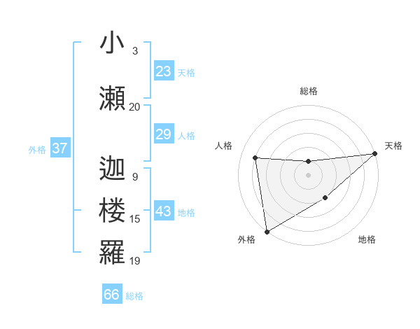 小瀬 迦楼羅さんを姓名の画数から五運を鑑定