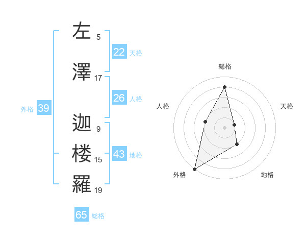 左澤 迦楼羅さんの外格は39画の5点!