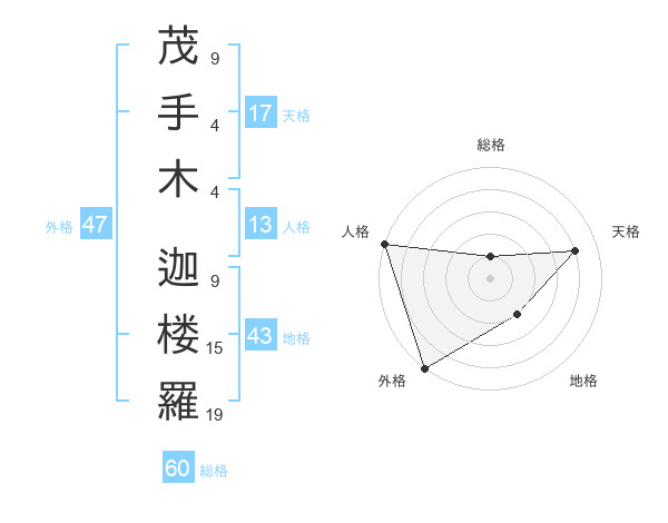 茂手木 迦楼羅さんの総格は60画の1点!