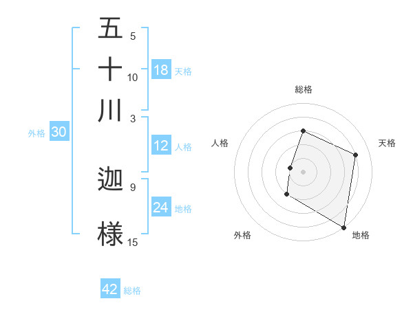 五十川 迦様さんを姓名の画数から五運を鑑定