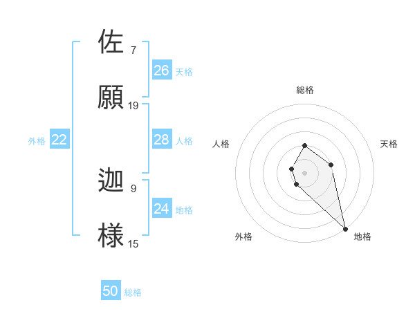 佐願 迦様さんの総格は50画の2点!