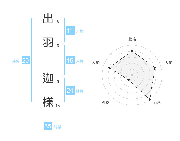 出羽 迦様さんを姓名の画数から五運を鑑定