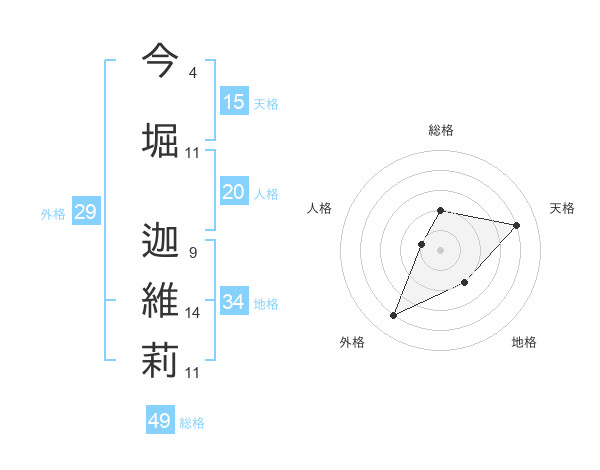 今堀 迦維莉さんを姓名の画数から五運を鑑定