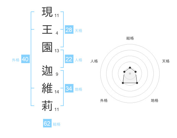 現王園 迦維莉さんを姓名の画数から五運を鑑定