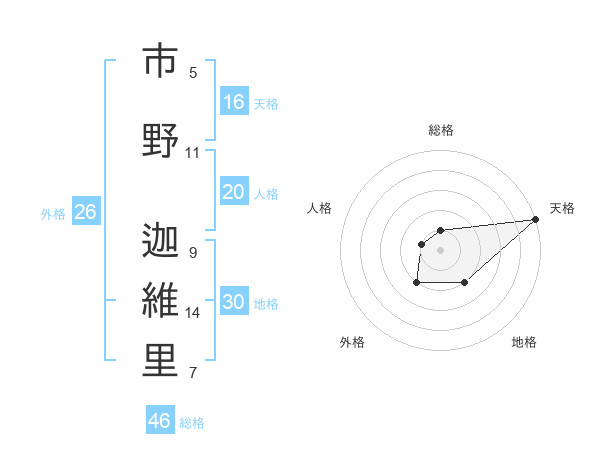 市野 迦維里さんの天格は16画の5点!