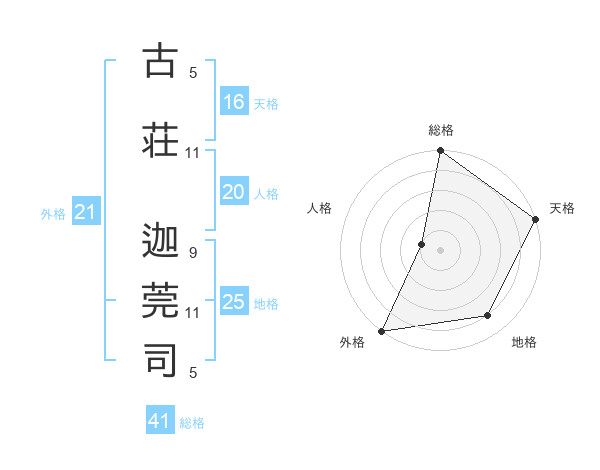 古荘 迦莞司さんを姓名の画数から五運を鑑定