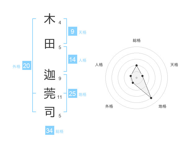 木田 迦莞司さんを姓名の画数から五運を鑑定
