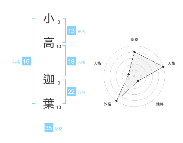 小高 迦葉さんの総格は35画の4点!