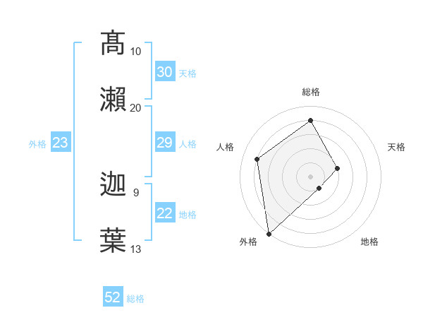 髙瀨 迦葉さんを姓名の画数から五運を鑑定